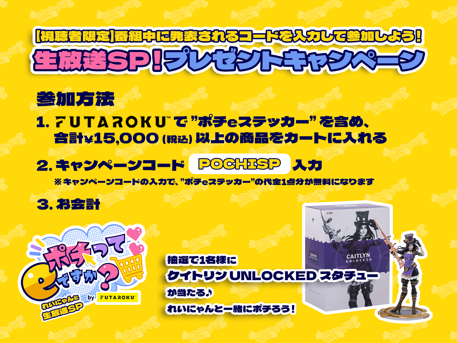Enter the code available during the live broadcast and spend ¥15,000 or more (including tax) at FUTAROKU + Pochi e-sticker to win a statue in the draw! *Application deadline: 2/9 (Fri) 23:59